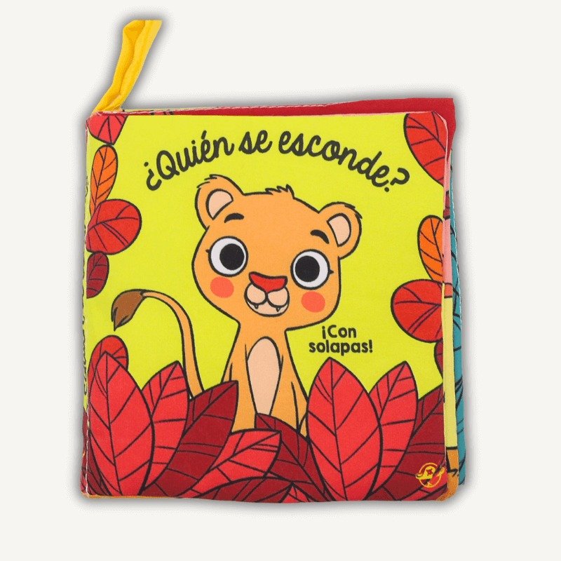 Libro de tela interactivo con solapas para buscar. De 0 a 36 meses. Tres solapas en el interior para que los más pequeños jueguen a descubrir animales.
